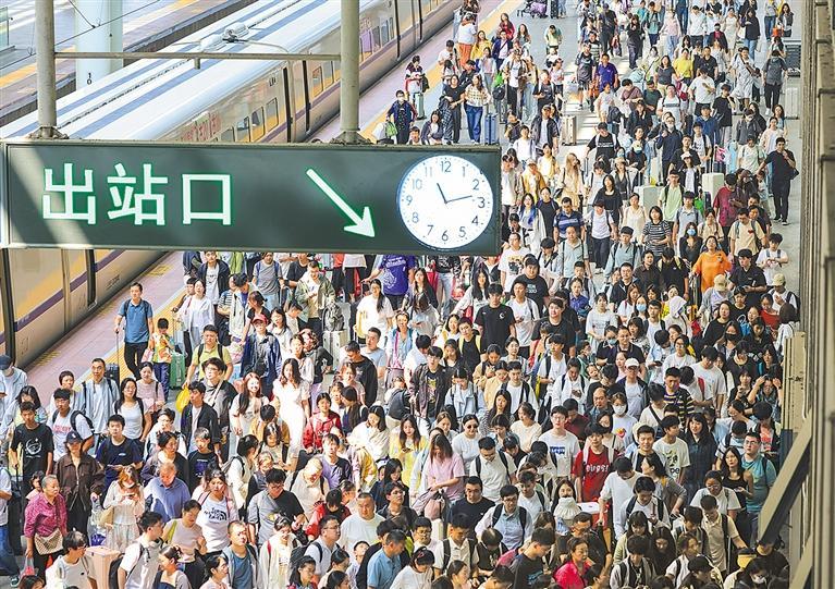 10月7日,旅客在南京火车站有序出站。苏 阳摄(新华社发)
