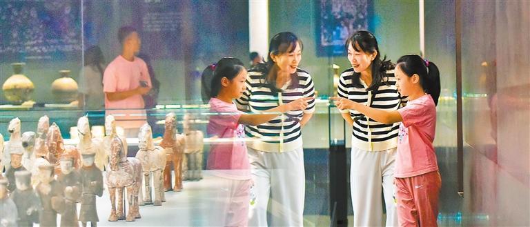 10月6日,游客在甘肃省敦煌小镇莫高山美术馆研学课堂临摹敦煌壁画,感受传统文化魅力。