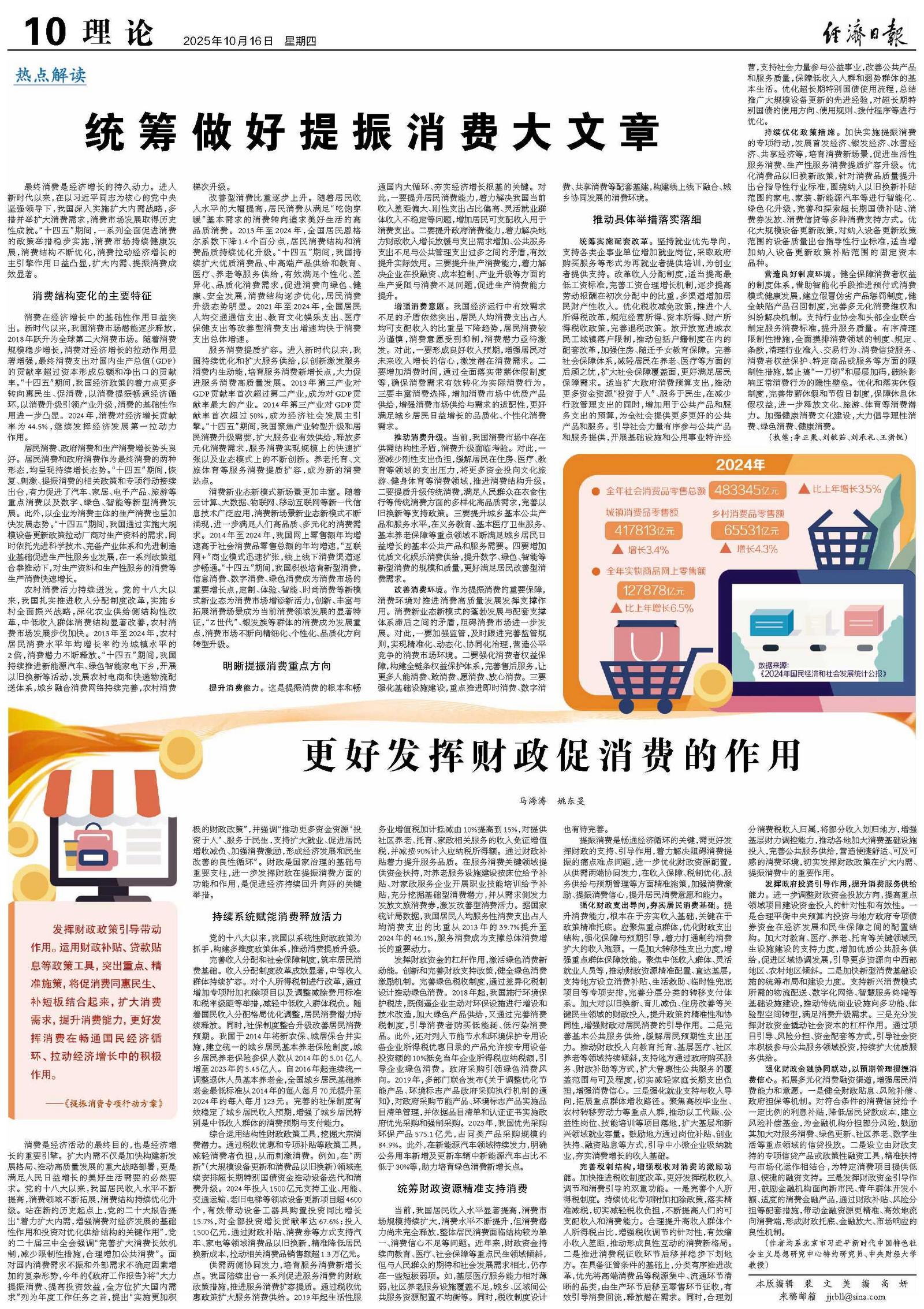 统筹做好提振消费大文章