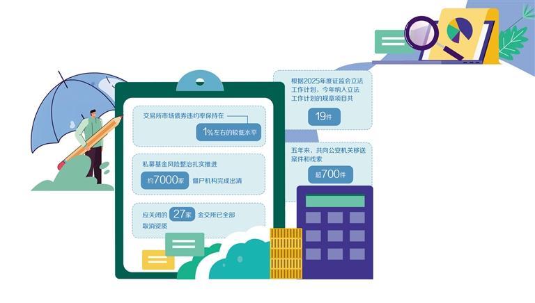 在监管制度建设中,立法工作成为重要抓手。以证监会2025年度立法工作计划为例,今年纳入立法工作计划的规章项目共有19件,其中“力争年内出台的重点项目”8件,需要抓紧研究、择机出台的项目11件。这些立法项目重点聚焦加强资本市场重点领域监管,维护市场平稳健康发展,切实保护广大中小投资者合法权益。