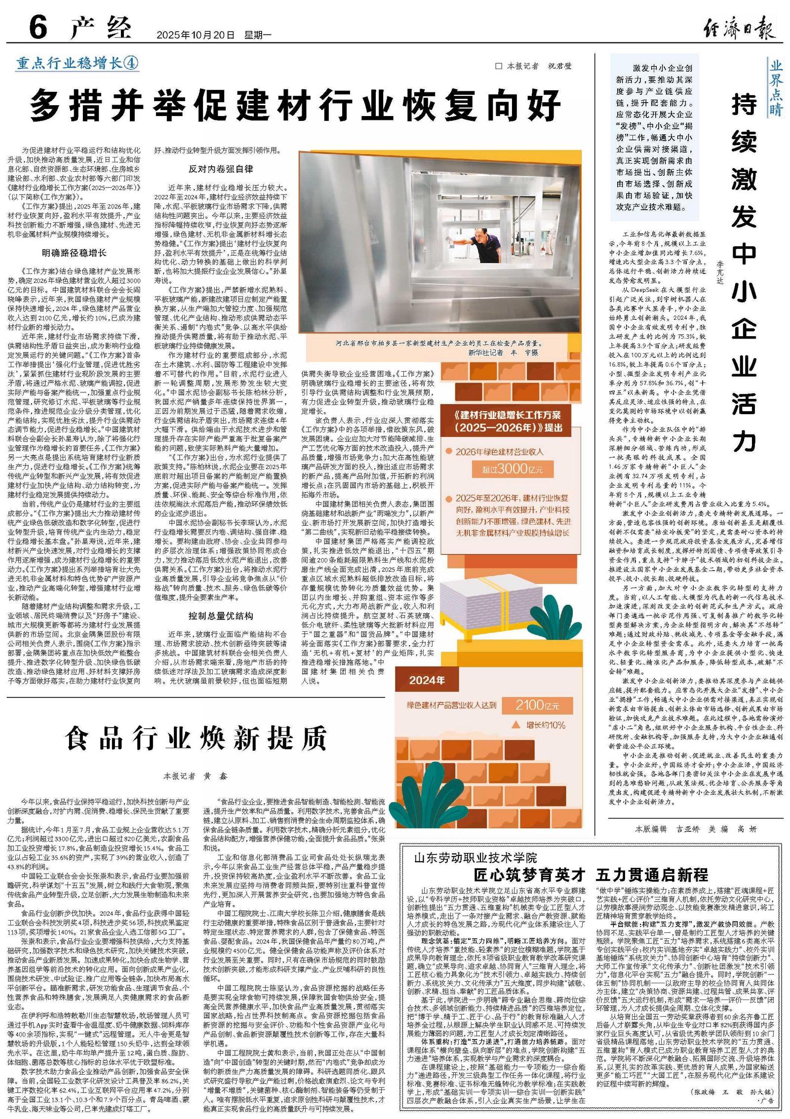 作为中小企业队伍中的“排头兵”,专精特新中小企业长期深耕细分领域、苦练内功,形成一批亮眼的科技成果。全国1.46万家专精特新“小巨人”企业拥有32.74万项发明专利,占企业发明专利总量的11%。今年前8个月,规模以上工业专精特新“小巨人”企业研发费用占营业收入比重为5.4%。