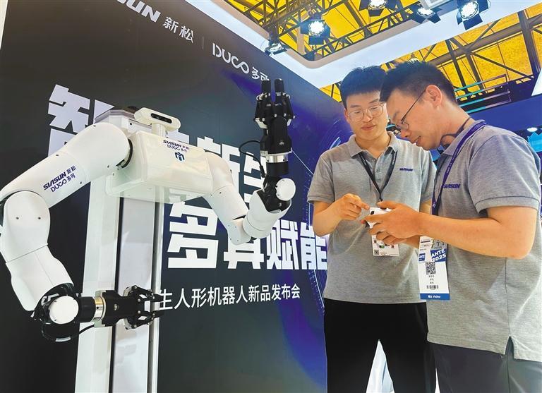 7月9日,位于浦东新区的中科新松有限公司,工作人员对人形机器人进行测试。目前,浦东机器人企业超过100家,核心企业产值达100多亿元。 朱 琳摄 (中经视觉)