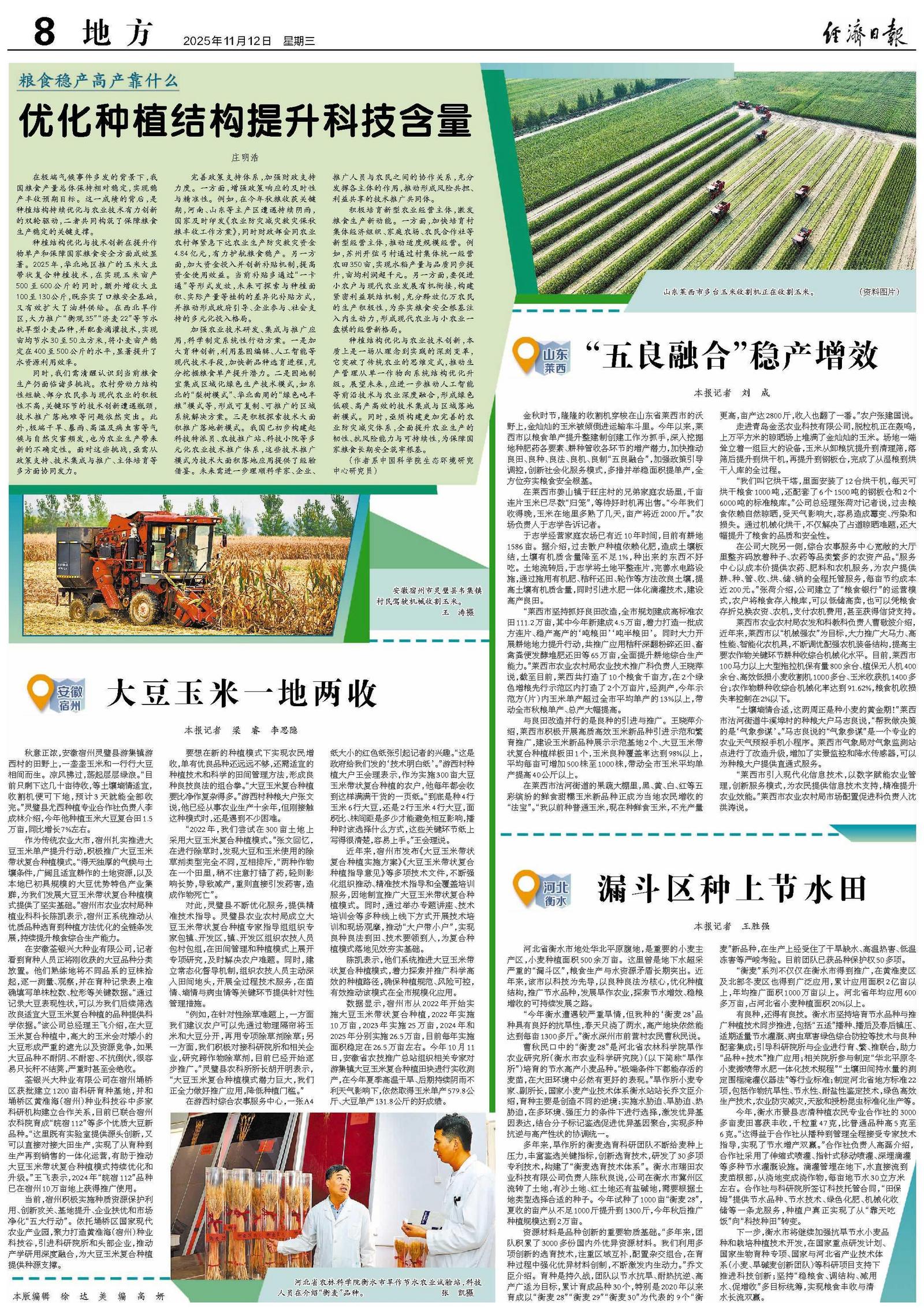 种植结构优化与农业技术创新,本质上是一场从理念到实践的深刻变革,它突破了传统农业的思维定式,推动生产管理从单一作物向系统结构优化升级。展望未来,应进一步推动人工智能等前沿技术与农业深度融合,形成绿色低碳、高产高效的技术集成与区域落地新模式。同时,亟须构建更加完善的农业防灾减灾体系,全面提升农业生产的韧性、抗风险能力与可持续性,为保障国家粮食长期安全筑牢根基。