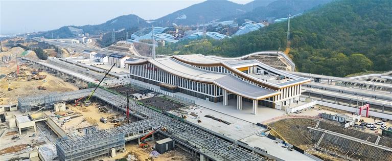 12月16日拍摄的浙江省金建高铁兰溪东站枢纽工程建设现场。金建高铁全长64.51公里,设计时速250公里,建成后将联通杭昌高铁、沪昆高铁等线路,对完善区域铁路网具有重要意义。