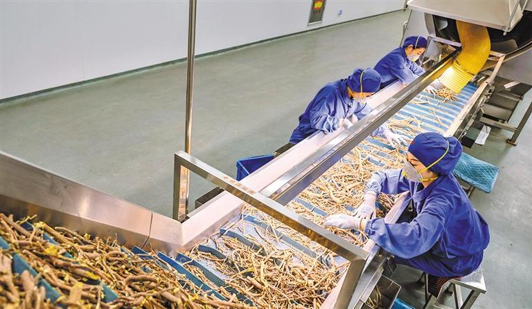 12月1日,万荣县山西华康药业股份有限公司员工在加工中药材。运城重点打造道地中药材、特色原料药、经典中成药等医药产品,加快构建晋南新特药基地。