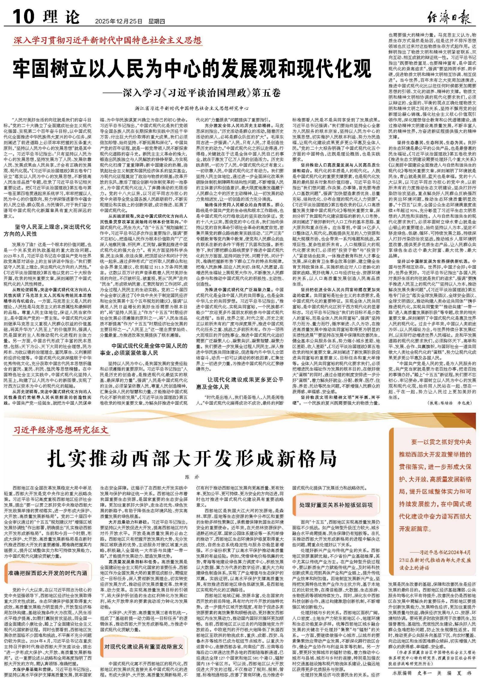 西部地区在全国改革发展稳定大局中举足轻重,西部大开发是党中央作出的重大战略决策。习近平总书记高度重视西部地区经济社会发展,提出“要一以贯之抓好党中央推动西部大开发政策举措的贯彻落实,进一步形成大保护、大开放、高质量发展新格局”。党的二十届四中全会审议通过的“十五五”规划建议对“增强区域发展协调性”作出部署,明确提出“扎实推动西部大开发形成新格局”。当前和今后一个时期,形成大保护、大开放、高质量发展新格局是在新时代推进西部大开发的重要遵循,需准确把握其内涵要义,提升区域整体实力和可持续发展能力,为中国式现代化建设贡献力量。