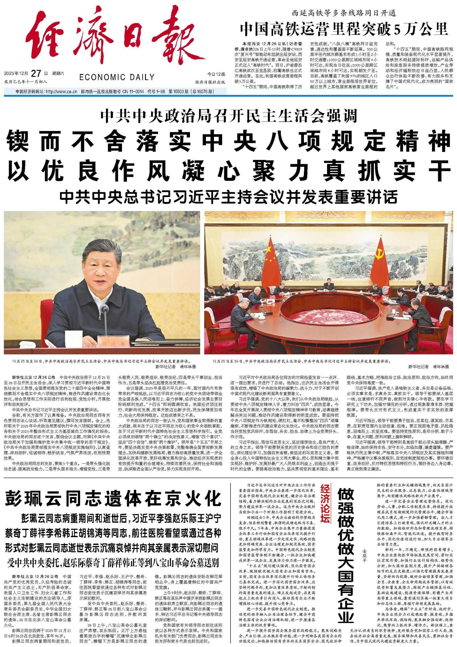 总体看,确保“十五五”开好局、起好步,中央企业须全力以赴稳经营、提质效,多措并举优布局、调结构,聚焦融合强创新、促转化,乘势而上抓改革、增活力。新征程上,要充分认识肩负的职责使命,更好服务党和国家工作大局,服务经济社会高质量发展,服务保障和改善民生,勇担社会责任,为中国式现代化建设贡献更大力量。