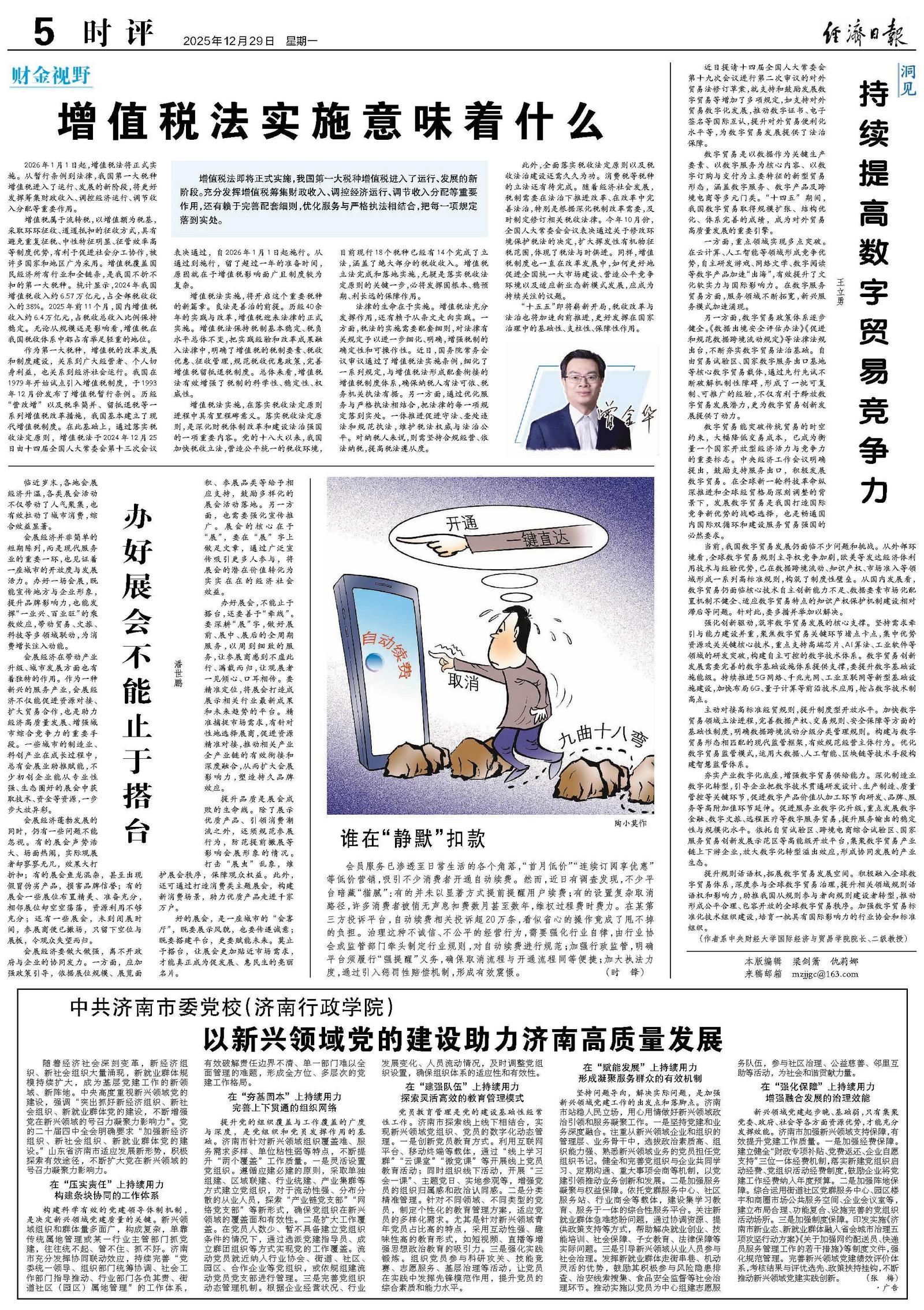 强化创新驱动,筑牢数字贸易发展的核心支撑。坚持需求牵引与能力建设并重,聚焦数字贸易关键环节堵点卡点,集中优势资源攻关关键核心技术,重点支持高端芯片、AI算法、工业软件等领域的研发突破,构建自主可控的数字技术体系。数字贸易创新发展需要完善的数字基础设施体系提供支撑,要提升数字基础设施能级。持续推进5G网络、千兆光网、工业互联网等新型基础设施建设,加快布局6G、量子计算等前沿技术应用,抢占数字技术制高点。