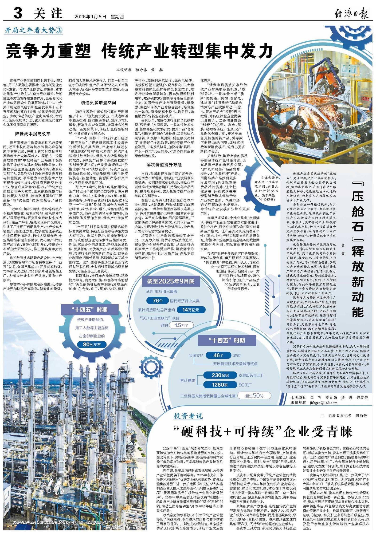 绿色发展是中国式现代化的鲜明底色。“十五五”规划建议提出,以碳达峰碳中和为牵引,协同推进降碳、减污、扩绿、增长,筑牢生态安全屏障,增强绿色发展动能。在此背景下,传统行业既面临挑战,也拥有新的发展机会。