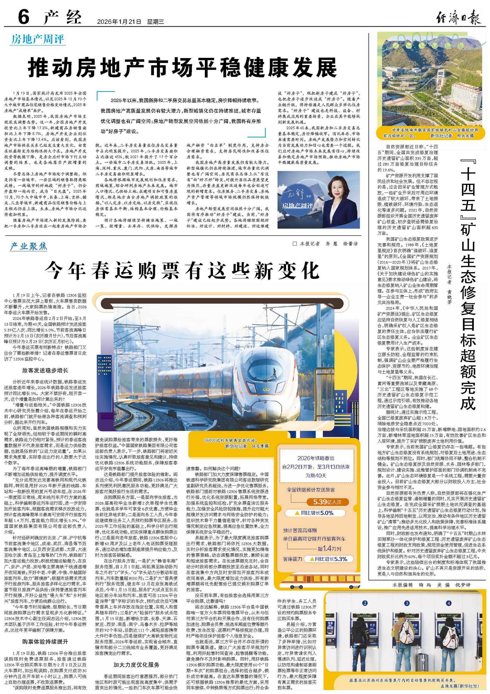 “充分运用发达完善高铁网和现代化铁路网,特别是用好2025年新开通的线路、车站和一批新投用的复兴号动车组,在2026年一季度图日常线、周末线列车开行方案的基础上,科学编制春运列车运行图,进一步安排加开旅客列车,根据客流需求梯次投放运力,预计客流高峰期单日最高可安排开行旅客列车超1.4万列,客座能力同比增长5.3%。”中国国家铁路集团有限公司客运部负责人介绍。