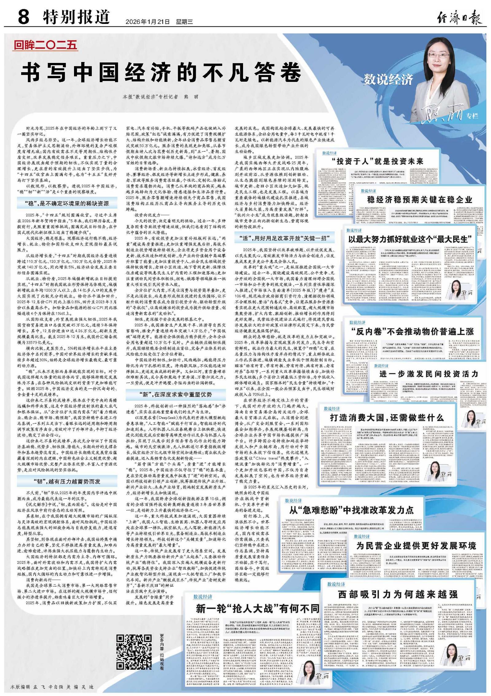 风雨多经志弥坚。这一年,全球经济增长动能不足,贸易保护主义思潮涌动,外部环境的复杂严峻程度有增无减;国内有效需求不足等周期性、结构性矛盾交织,改革发展稳定任务艰巨。重重压力之下,中国经济展现出超乎预期的韧性,不仅实现了量的合理增长,更在质的有效提升上迈出了坚实步伐,为“十四五”收官画上圆满句号,也为“十五五”良好开局打下坚实基础。