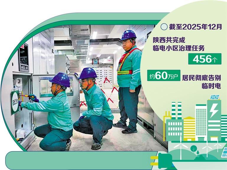 截至2025年12月,陕西共完成456个临电小区治理任务,约60万户居民彻底告别临时电,用上了放心电、舒心电、可靠电。