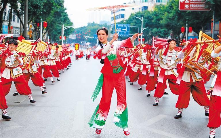▲2月17日,江西省赣州市章贡区长征广场的踩街民俗文化活动为春节增添浓浓的年味。