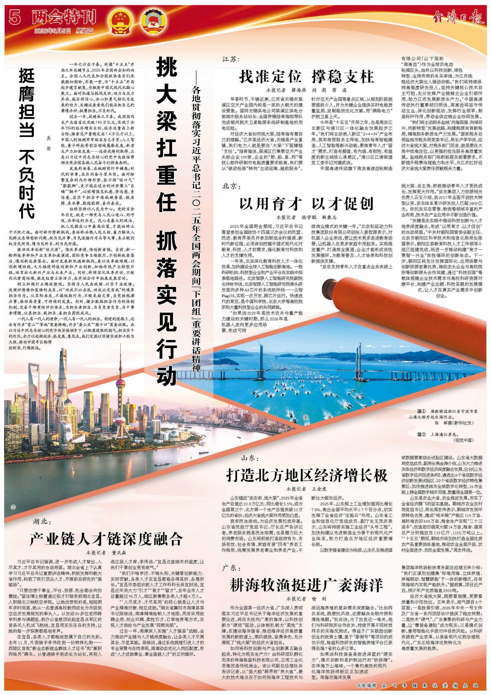 一年之计在于春。时逢“十五五”开局之年关键节点,2026年全国两会如约而至。全国人大代表和全国政协委员们承载殷切期盼,齐聚一堂,为“十五五”开局起步建言献策,为推进中国式现代化凝心聚力。面对机遇与挑战交织、动力与压力并存,能否将信心、决心和勇气转化为发展的动力,关键还要看我们能否把自己的事情办好,挺膺担当,不负时代。