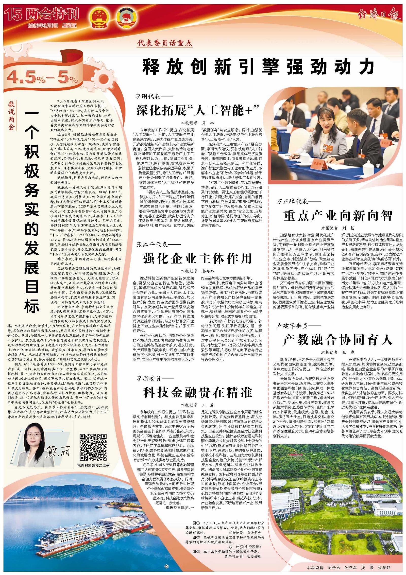 从优势条件看,中国特色社会主义制度、超大规模市场、完整产业体系、丰富人才资源等多重优势相互叠加,为中国经济的内在稳定性和长期成长性提供有力支撑。从发展动能看,新质生产力加快培育,产业链价值链向中高端延伸,不仅为当前经济增长注入动力,更在重塑中国经济的中长期竞争新优势。同时,全国统一大市场建设向纵深推进,高水平对外开放进一步扩大。从政策支撑看,今年将实施更加积极有为的宏观政策,更加积极的财政政策和适度宽松的货币政策协同发力,着力稳就业、稳企业、稳市场、稳预期。政策给力、改革发力,将为经济量稳质升保驾护航。从地方发展预期看,今年多数省份将经济增长目标设定在5%左右或更高,将为全国目标的顺利实现汇聚强大合力。