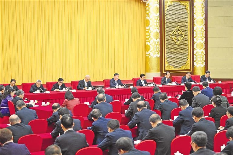 中共中央政治局常委、全国政协主席王沪宁,中共中央政治局常委、中央办公厅主任蔡奇参加看望和讨论。