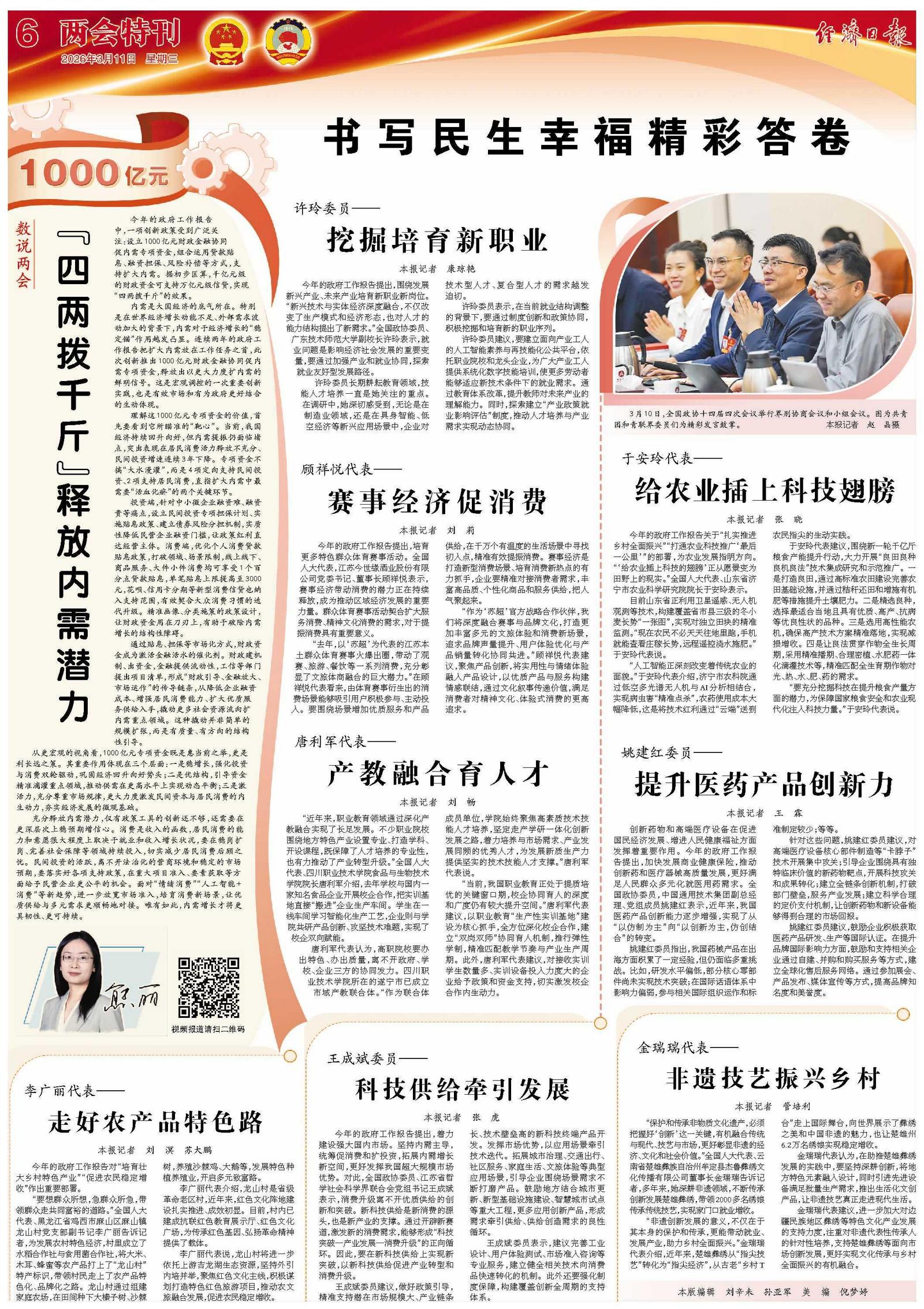 许玲委员长期耕耘教育领域,技能人才培养一直是她关注的重点。在调研中,她深切感受到,无论是在制造业领域,还是在具身智能、低空经济等新兴应用场景中,企业对技术型人才、复合型人才的需求越发迫切。