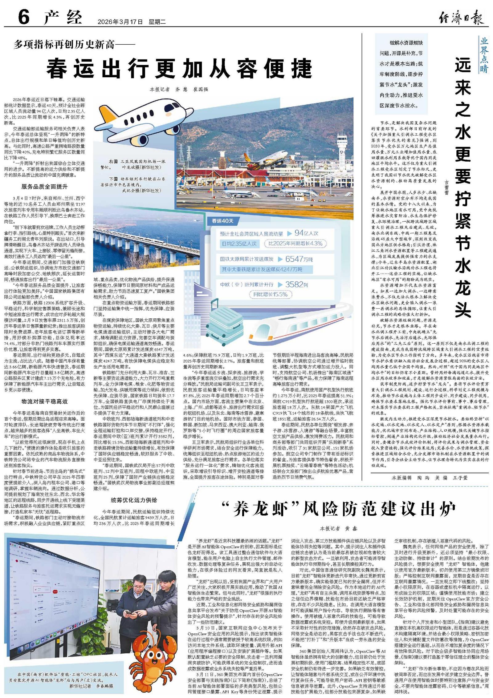 王卫军表示,民航局组织行业各单位科学研判市场需求,结合安全运行保障能力,统筹组织至枢纽机场、热点旅游地区的运力供给,充分满足旅客出行需求。各单位落实“服务运行一体化”要求,精细优化客流组织,采取增设引导标识、增开安检通道等措施,全面提升旅客在途体验。特别是面对春节假期后半程海南进出岛客流高峰,民航局统筹部署,协调航空公司通过增开临时航班、调整大机型等方式增加运力投入。同时,支持航空公司、机场推出“海南区域通”“畅行海南通”等产品,有力保障了海南返程高峰旅客出行需求。