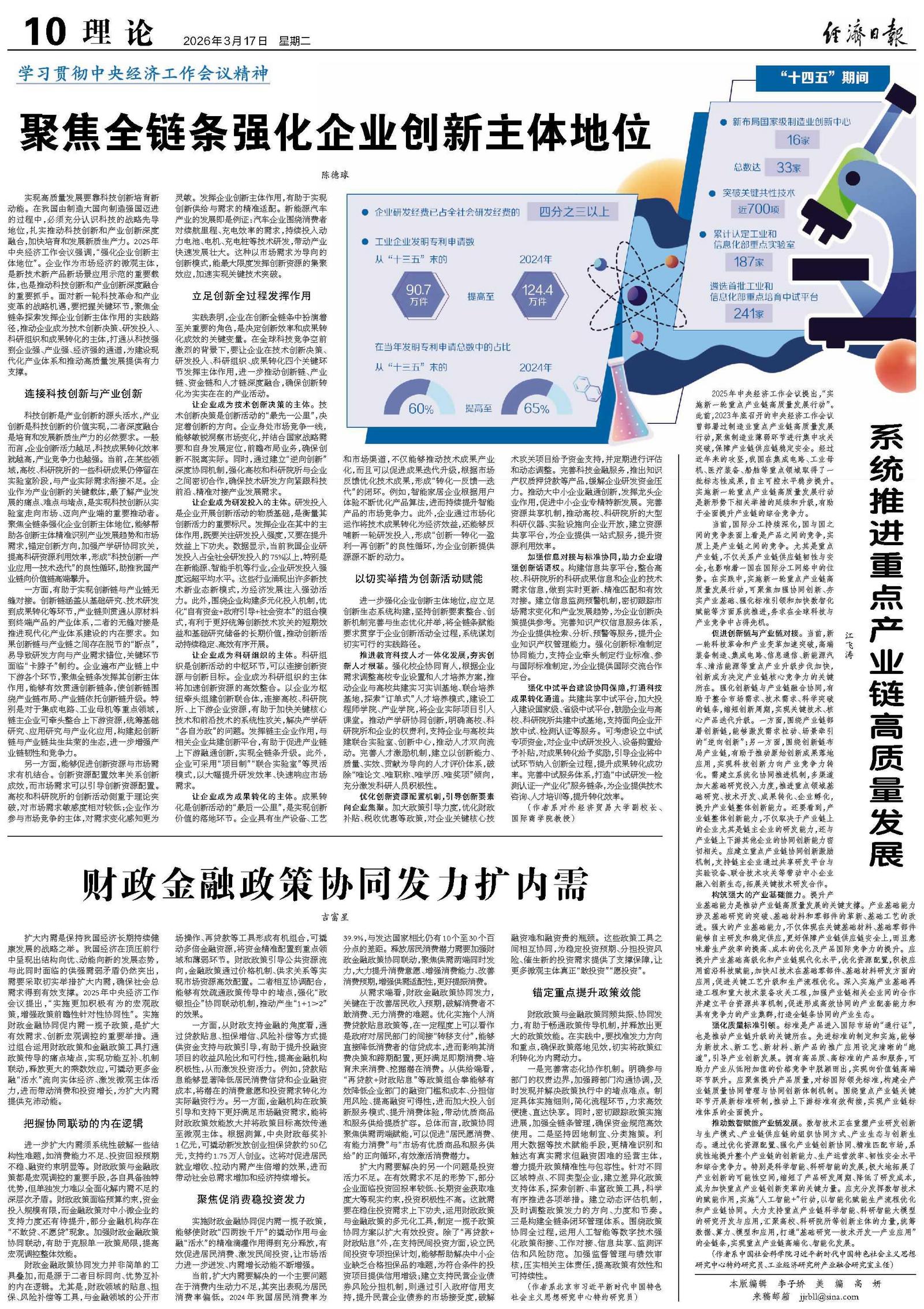 聚焦全链条强化企业创新主体地位