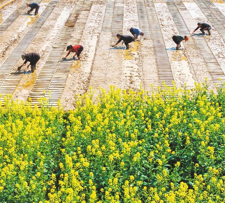 3月11日,湖南省衡阳市衡东县衡东玉壶岩种养合作社双季稻种植基地,村民抢抓农时开展早稻播种育秧工作。曹正平摄(中经视觉)
