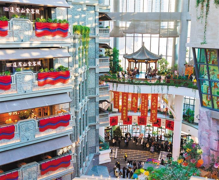 上世纪90年代以来,红旗街经历了“电子一条街”、传统商业街、现代综合商圈的发展历程。欧亚商都、亚细亚百货、万达广场、时代天街……如今,这里商场众多,业态多样,涵盖高端消费、年轻追求、家庭娱乐等多层次需求,可谓文旅商融合、全客层覆盖。特别是2019年开业的室内山景文旅商业体“这有山”,将室内山景与商业结合,集旅游、美食、商业、休闲为一体,迅速成为网红打卡地。