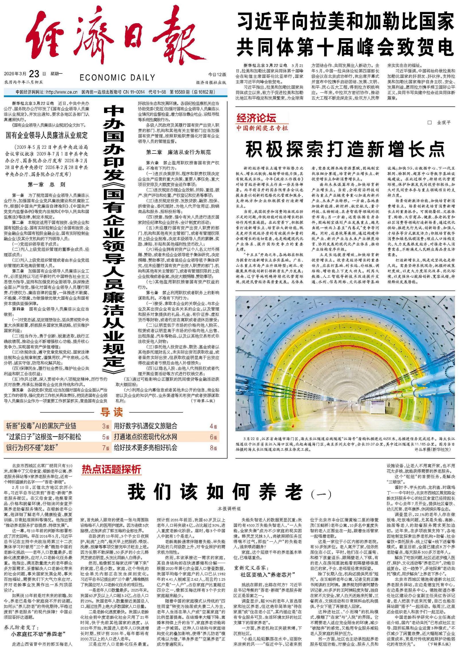 面向未来谋篇布局,加快培育新产业增长点。当前,全球前沿科技创新与重点产业链竞争重心加速向新兴产业、未来产业转移。一方面,各地要加快新能源、新材料、航空航天、量子科技、生物制造、具身智能等领域的投资布局;另一方面,还需依据自身条件,因地制宜谋划产业发展重点,避免出现一哄而上甚至“内卷式”竞争等问题。同时,还要统筹兼顾,通过构建传统产业、新兴产业与未来产业梯度培育、协同发展的现代化产业体系,推动产业结构有序升级。