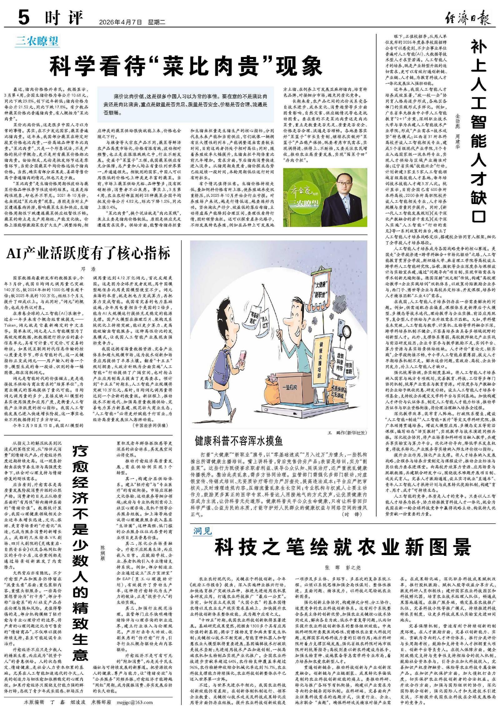 我国还拥有海量数据资源、完备产业体系和超大规模市场,这为技术创新和场景应用提供了丰厚土壤。翻看“十五五”规划纲要,大政方针既为全面实施“人工智能+”行动提供了广阔空间,也对抢占产业应用制高点提出了更高要求。预计到“十五五”时期末,人工智能产业规模将突破10万亿元,届时,日均词元调用量将达到一个全新的数量级。新征程上,推动技术不断迭代、加强高质量数据供给、完善电力算力新基建、规范壮大商业生态,“人工智能+”必将更好赋能千行百业,为经济高质量发展注入澎湃动能。