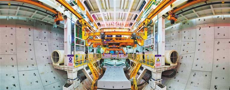 三月二十二日拍摄的江苏南通市海门区海太长江隧道施工现场,目前掘进任务完成过半。