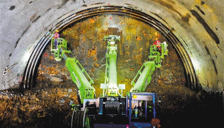 3月23日,在江西吉安市遂川县长赣高铁江西段云岭隧道进口,中铁十四局工人在操控智能钢拱架安装台车。