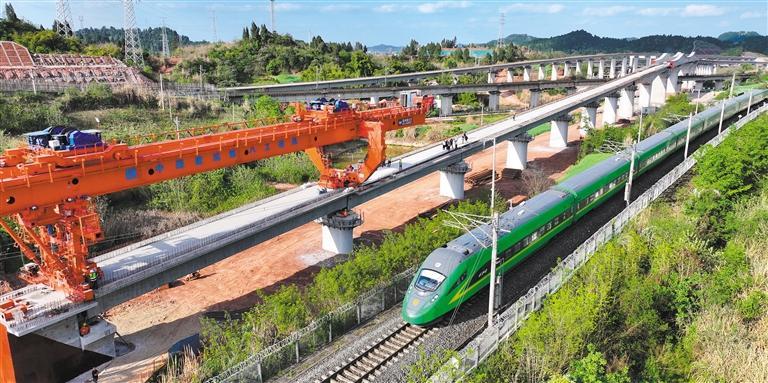 3月26日,四川遂宁市,成达万高铁项目5标段箱梁架设任务全面收官。 张勤宝摄(中经视觉)