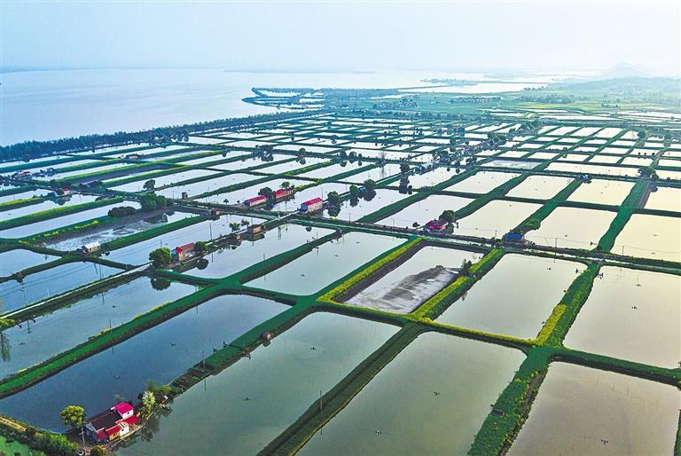 近年来,安徽省安庆市迎江区充分利用丰富的水面资源,引导农民大力发展生态水产养殖,有效促进农民增收。图为安庆市迎江区长风镇联营渔场。刘伯顺摄(中经视觉)