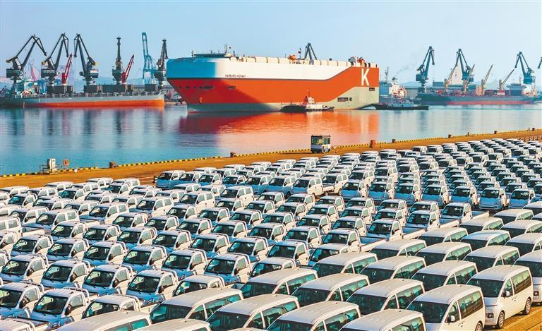 3月20日,山东港口烟台港,一艘汽车运输船缓缓靠泊码头。