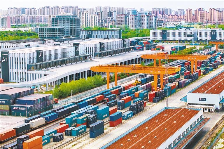 4月8日,位于安徽省合肥庐阳经济技术开发区的合肥北站物流基地,满载货物的中欧班列整装待发。当地加快“公路+铁路+海运”多式联运综合物流运输体系建设,今年一季度中欧班列(合肥)共发运126列,同比增长129.1%。赵 明摄(中经视觉)