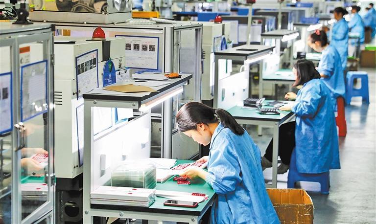 位于四川省华蓥市华蓥山经开区的四川恒格光电科技有限公司生产车间内,工人在有序赶制订单,生产汽车氛围灯、手机光学透镜等产品。 邱海鹰摄(中经视觉)