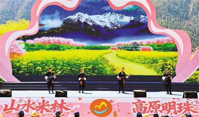 4月2日,西藏林芝市第二十三届桃花旅游文化节米林分会场开幕式在米林市扎西绕登镇彩门云上桃源景区举行。