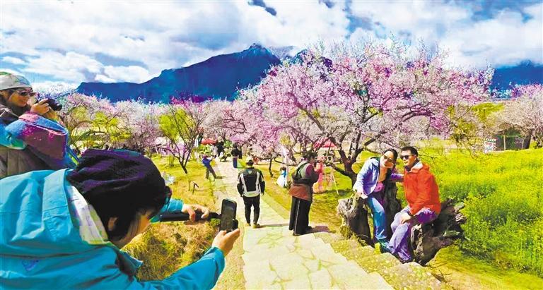 3月27日,林芝市嘎拉桃花源景区,桃花盛放,游人如织。清明假期,林芝全市累计接待游客5.26万人次,旅游收入突破360万元。