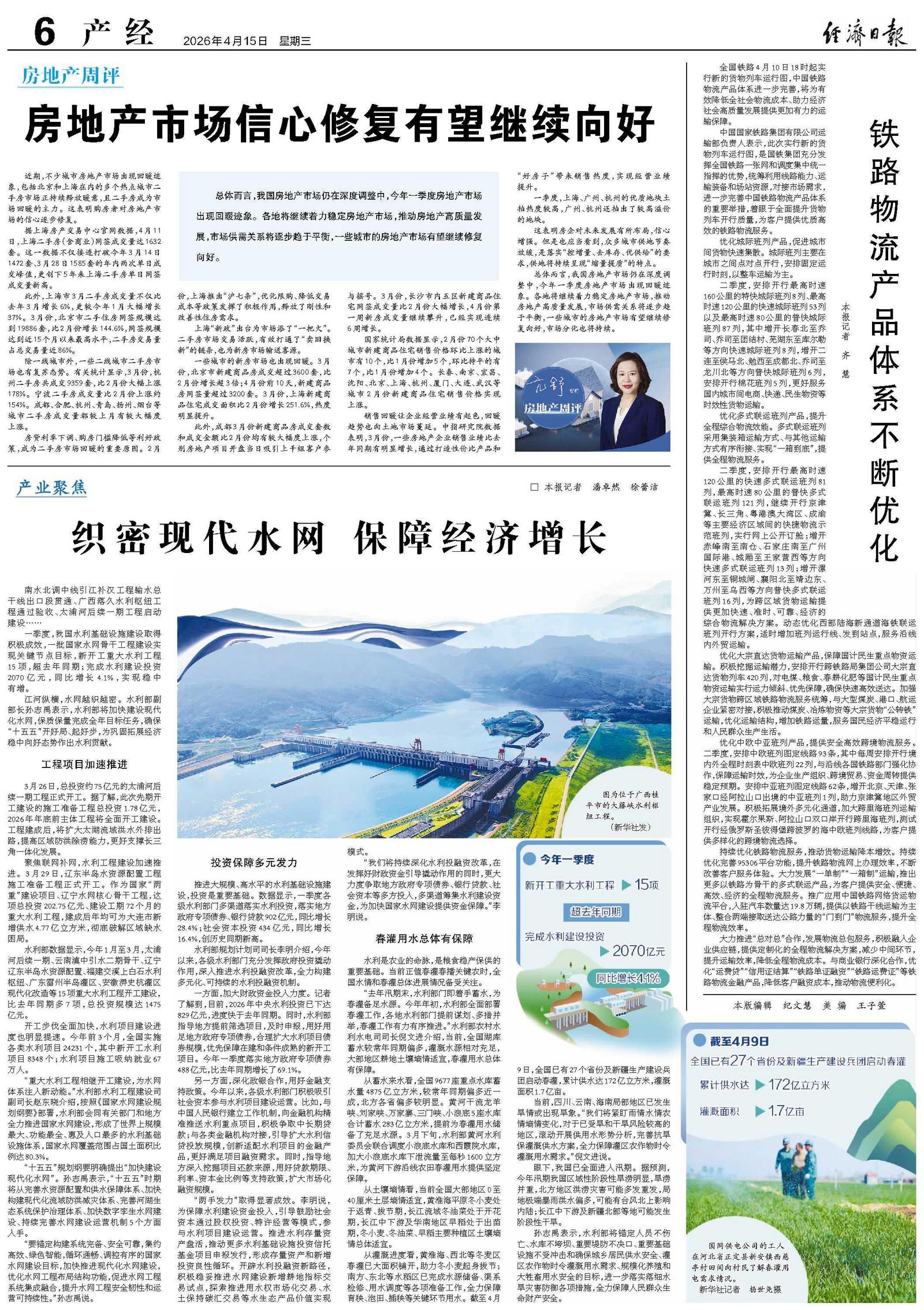 一季度,我国水利基础设施建设取得积极成效,一批国家水网骨干工程建设实现关键节点目标,新开工重大水利工程15项,超去年同期;完成水利建设投资2070亿元,同比增长4.1%,实现稳中有增。
