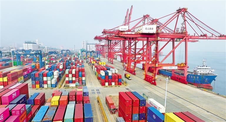 南京海关4月18日发布的数据显示,今年一季度,长三角地区进出口总值达4.49万亿元,同比增长15.8%,规模创历史新高。图为当日货轮在江苏省连云港港集装箱码头装卸货物。王 春摄(中经视觉)