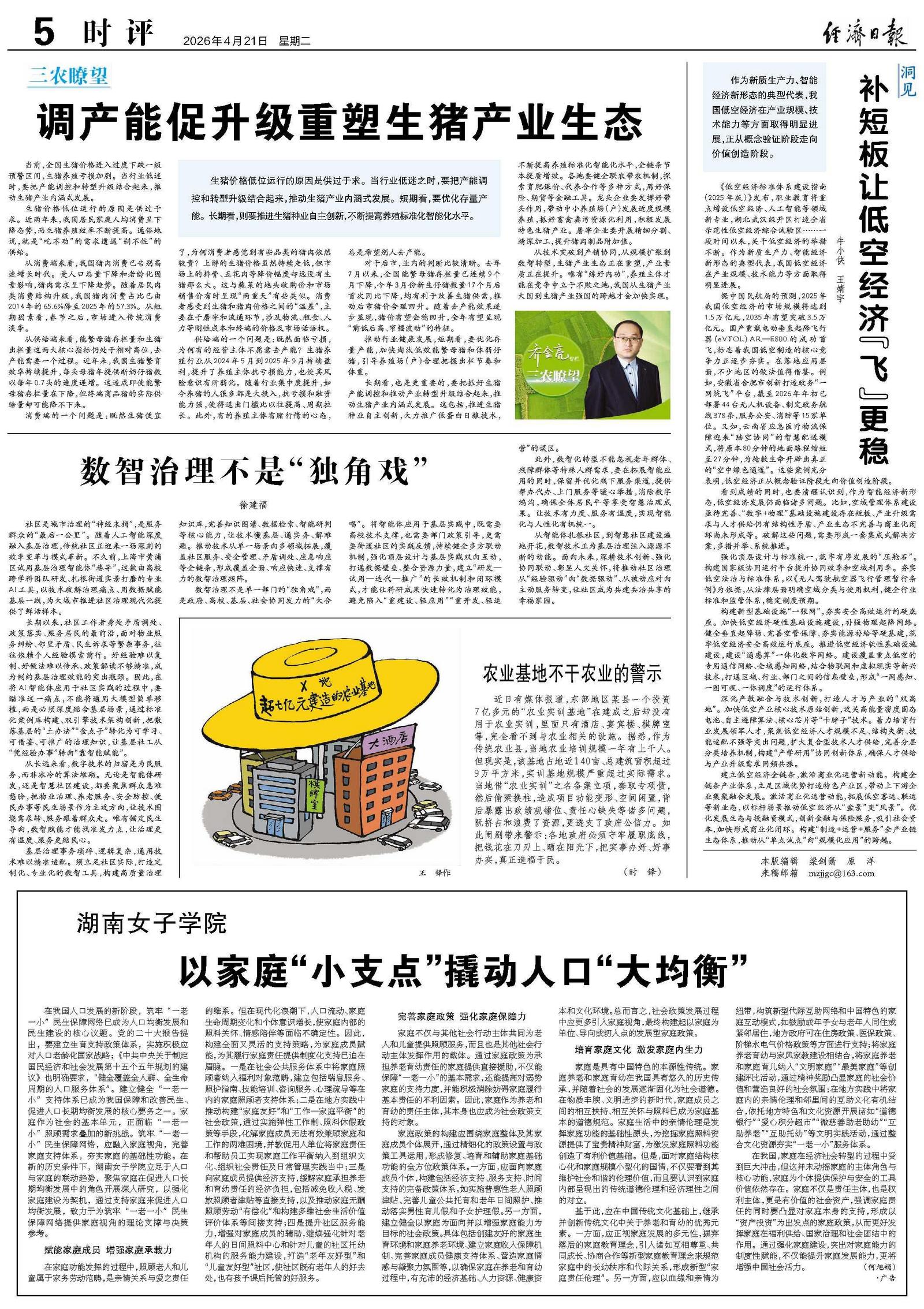 看到成绩的同时,也要清醒认识到,作为智能经济新形态,低空经济发展仍面临诸多问题。比如,空域管理体系建设亟待完善、“数字+物理”基础设施建设存在短板、产业升级需求与人才供给仍有结构性矛盾、产业生态不完善与商业化闭环尚未形成等。破解这些问题,需要形成一套集成式解决方案,多措并举、系统推进。