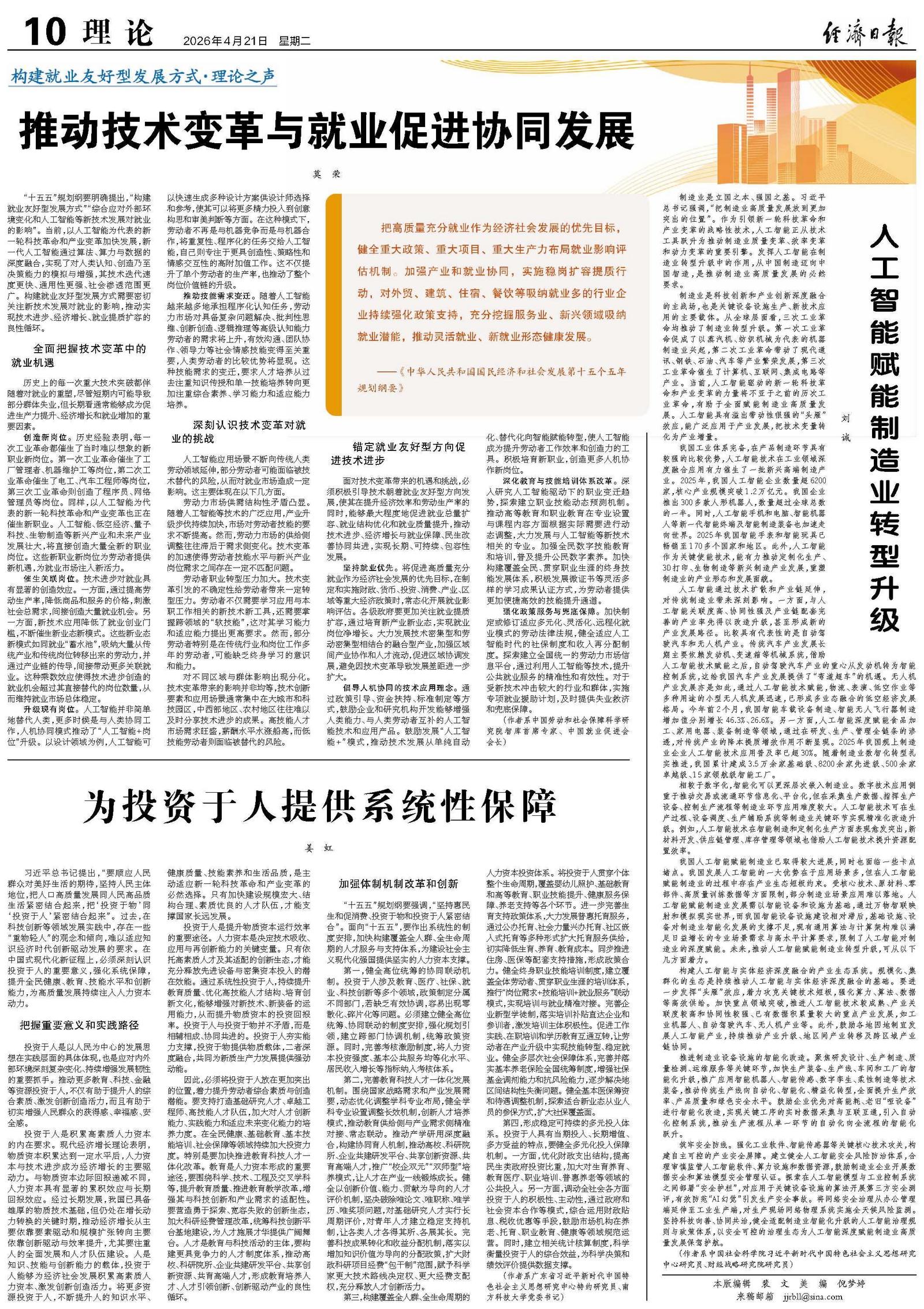 人工智能通过技术扩散和产业链延伸,对传统制造业带来深刻影响。一方面,与人工智能关联度高、协同性强及产业链配套完善的产业率先得以改造升级,甚至形成新的产业发展路径。比较具有代表性的是自动驾驶汽车和无人机产业。传统汽车产业发展长期主要依赖发动机、变速箱等机械系统,借助人工智能技术赋能之后,自动驾驶汽车产业的重心从发动机转为智能控制系统,这给我国汽车产业发展提供了“弯道超车”的机遇。无人机产业发展亦是如此,通过人工智能技术赋能,物流、表演、低空作业等多种用途的小型无人机发展迅速,已形成多业态融合的低空经济发展格局。今年前2个月,我国智能车载设备制造、智能无人飞行器制造增加值分别增长46.3%、26.6%。另一方面,人工智能深度赋能食品加工、家用电器、装备制造等领域,通过在研发、生产、管理全链条的渗透,对传统产业的降本提质增效作用不断显现。2025年我国规上制造业企业人工智能技术应用普及率已超30%。随着制造业数智化转型扎实推进,我国累计建成3.5万余家基础级、8200余家先进级、500余家卓越级、15家领航级智能工厂。