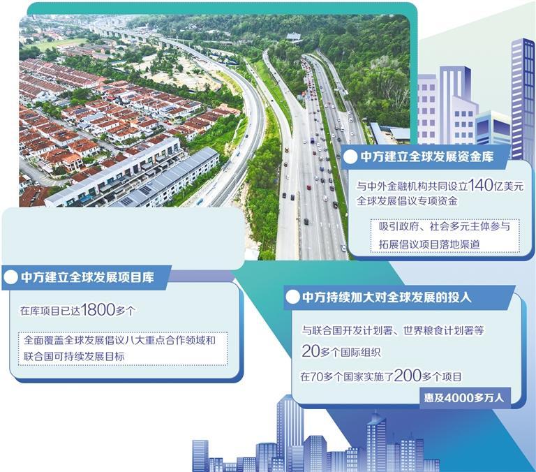 中国是全球发展倡议的提出者,更是坚定的行动派。中方持续加大对全球发展的投入,升级全球发展和南南合作基金并增资至40亿美元,与联合国开发计划署、世界粮食计划署等20多个国际组织在70多个国家实施了200多个项目,惠及4000多万人。中方建立全球发展资金库,与中外金融机构共同设立140亿美元全球发展倡议专项资金,吸引政府、社会多元主体参与,拓展倡议项目落地渠道。中方建立全球发展项目库,在库项目已达1800多个,全面覆盖全球发展倡议八大重点合作领域和联合国可持续发展目标。