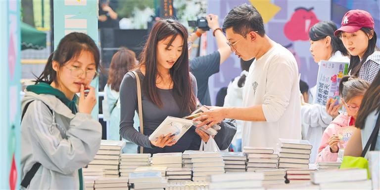 4月18日,市民在北京朝阳公园书市主展场选购图书。当日,以“书香京城 悦读春天”为主题的2026北京书市开幕。本次书市除集中展场外,还将广泛走进社区、商圈、学校,开展70余场展销活动。同时,全市2000余家实体书店作为联动展场开展阅读文化活动,为市民带来一场书香浓郁的春日文化盛宴。