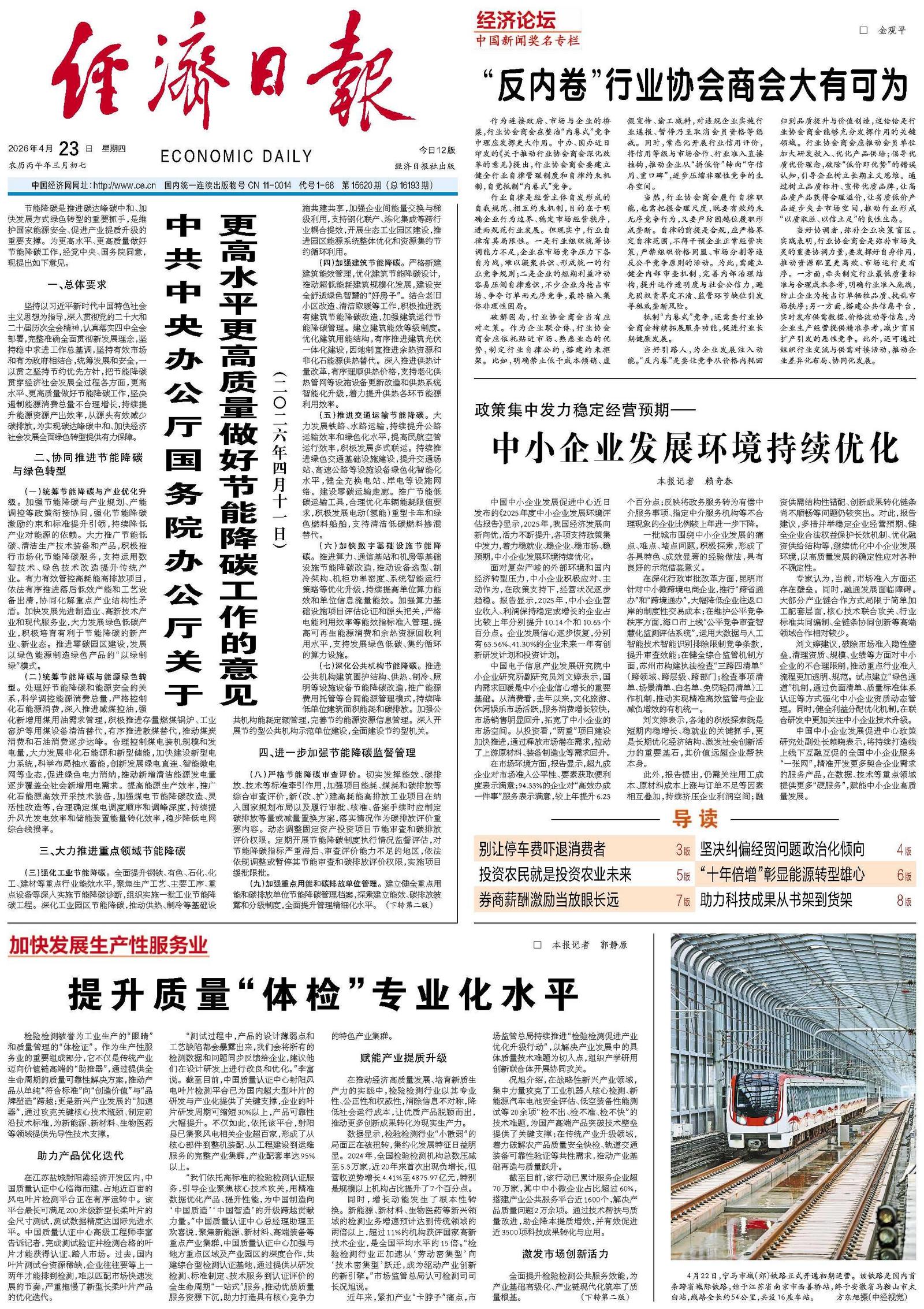 此外,报告提出,仍需关注用工成本、原材料成本上涨与订单不足等因素相互叠加,持续挤压企业利润空间;融资供需结构性错配、创新成果转化链条尚不顺畅等问题仍较突出。对此,报告建议,多措并举稳定企业经营预期、健全企业合法权益保护长效机制、优化融资供给结构等,继续优化中小企业发展环境,以高质量发展的确定性应对各种不确定性。