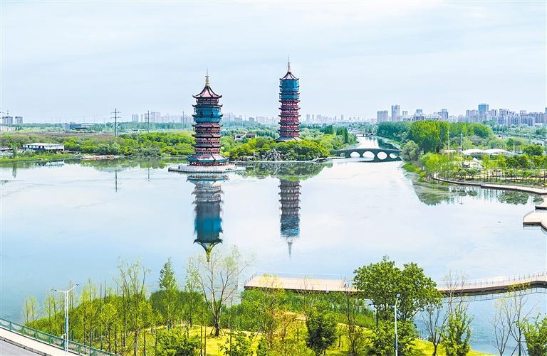4月23日拍摄的江苏省宿迁市宿城区印象黄河公园。近年来,当地持续改造和完善古黄河两岸,把古黄河打造成风光秀美的幸福河,不断优化城市人居环境。徐 瑞摄(中经视觉)