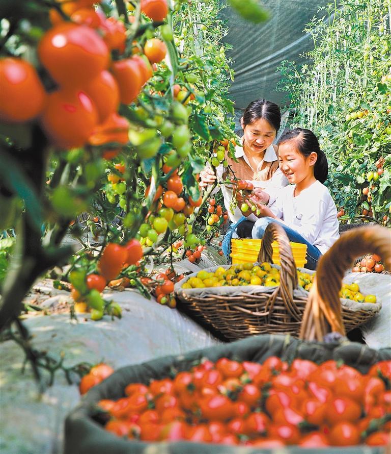 4月5日,安徽省阜阳市颍东区冉庙镇梧樟村绿色果蔬基地,游客在采摘圣女果。当地积极推进农旅融合发展,拓宽群众增收渠道。宿 飞摄(中经视觉)