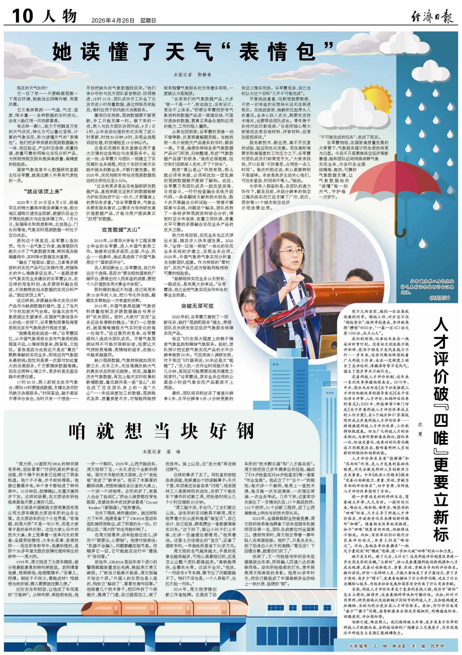 谷军霞相信,在国家高质量发展的大背景下,气象服务国计民生质效将更为凸显。今后不只是聚焦低空经济等新赛道,她和团队还将持续深耕气象实况业务,为各行各业提供精准、高效、可靠的气象数据支撑,让气象数据始终“读懂”每一刻天气,守护每一方安宁。