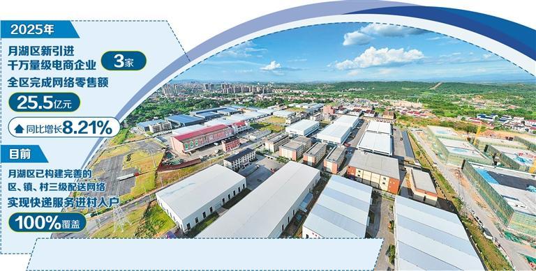 “带动一大片”,生态闭环吸引返乡潮。高效的物流生态形成了强大磁场。记者在恋之舞公司采访了解到,企业将设计、生产、电商直播、培训全产业链迁回月湖后,不仅自身年产值突破1.5亿元,更吸引了20余家体育服饰上下游企业返乡集聚,初步形成特色产业集群,“制造在园区、发货在云仓、销售在全网”的闭环生态就此形成。2025年,月湖区新引进迅盛、百鸿等千万量级电商企业3家,全区完成网络零售额25.5亿元,同比增长8.21%。