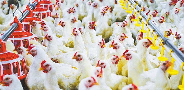 张春雨介绍,普通笼养的鸡1平方米要挤20只;圣农采用大规模地面平养模式,“空间大了,鸡心情好,运动充足,肉质自然更紧实、口感更好”。