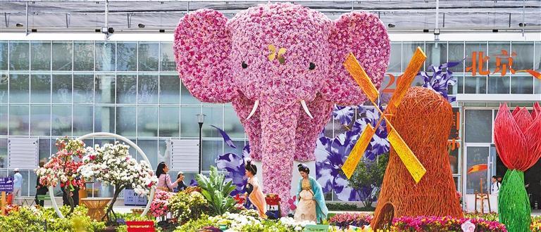 4月28日,市民游客在花展现场赏花游园。当日,以“花开无界”为主题的2026北京国际花展开幕。花展期间,将同步举办月季、牡丹等花卉展示和游园赏花活动。