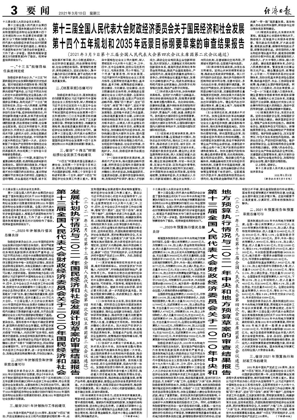 第十三届全国人民代表大会财政经济委员会关于二〇二〇年中央和地方预算执行情况与二〇二一年中央和地方预算草案的审查结果报告